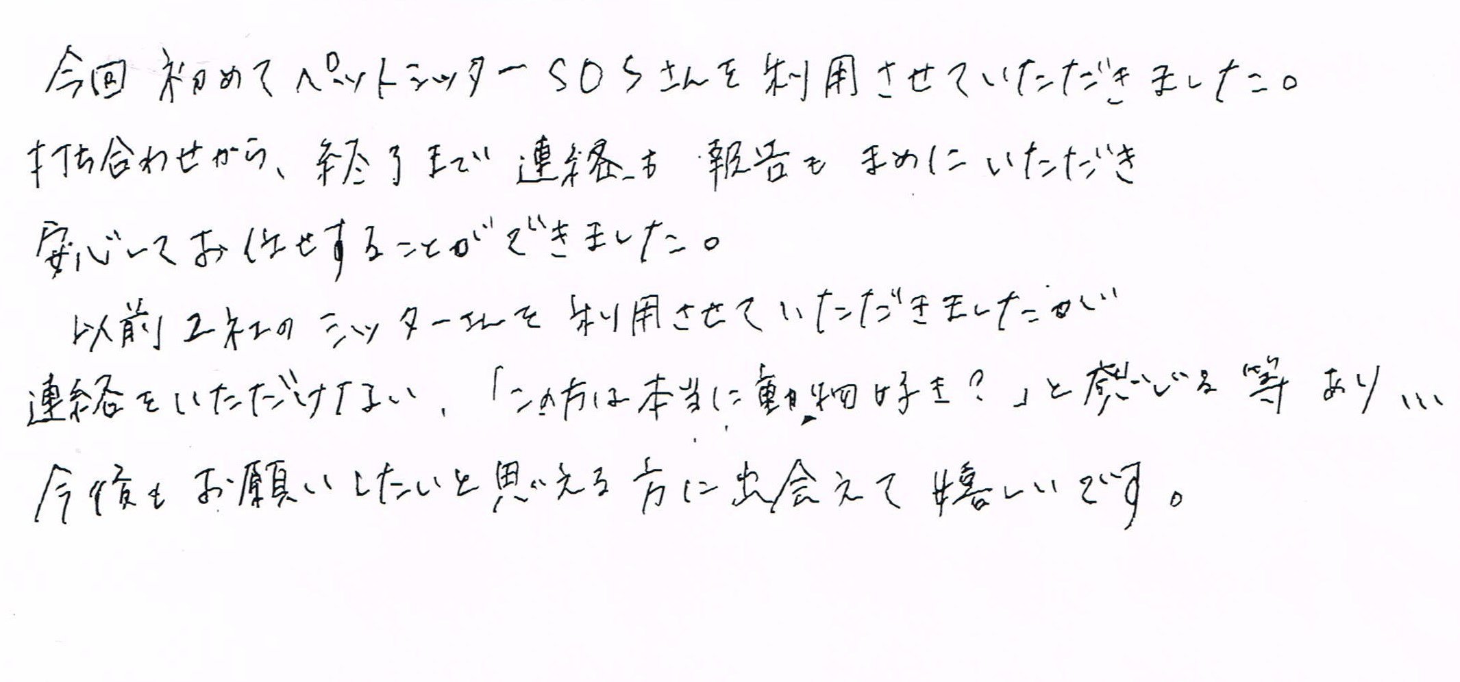 今回初めてペットシッターSOSさんを利用させていただきました。