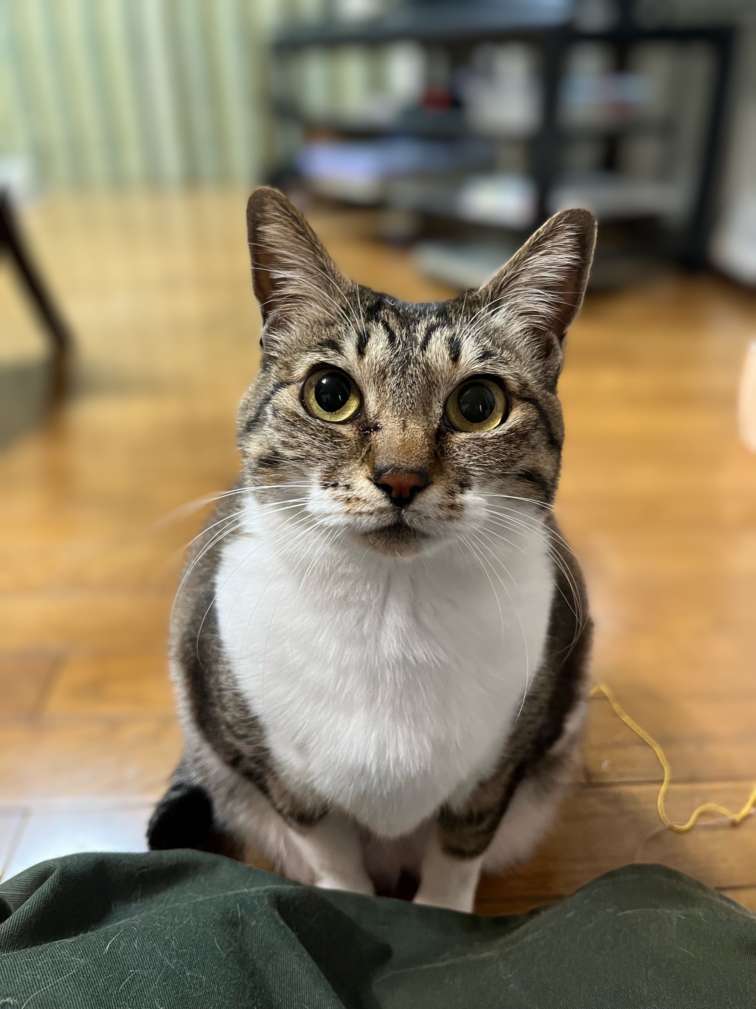 保護ネコ出身(?)なので警戒心が強く家族以外には慣れないのですが、すぐ石村さんの手からえさをもらうほどになりました。