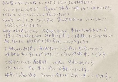 その時、ペットシッターSOSを知り、茅ヶ崎市内でのシッターさんに出会うことができました。