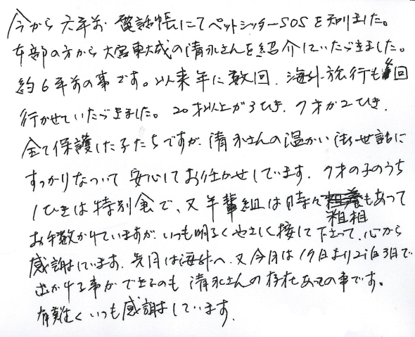 今から六年前、電話帳にてペットシッターSOSを知りました。