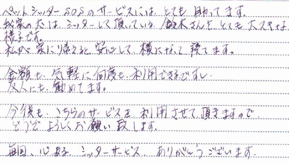 我家の犬は、シッターして頂いている鈴木さんをとても大スキな様子です。